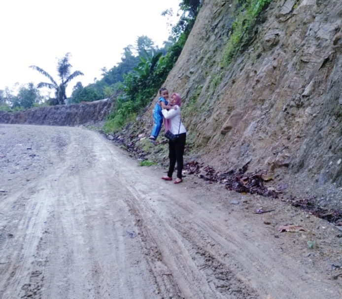 Setiba dijalan yang sering aku lewati dengan aman dengan pendakian yang cukup extrim bercampur bebatuan kecil, aku harus ekstra hati-hati karena pagi itu jalan menjadi licin diguyur hujan dari subuh tadi. Dengan perasaan was-was aku tetap melanjutkan perjalanan dengan berhati-hati.