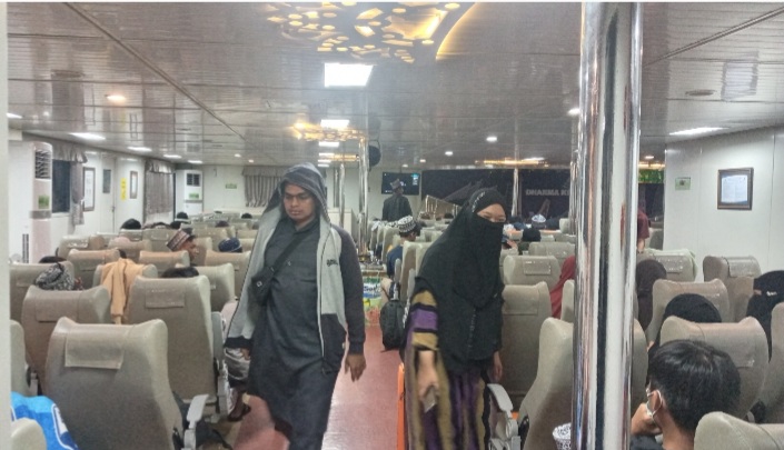Sejauh mata memandang nyaris tak ada ruang kosong dari serbuan penumpang ratusan jumlahnya. Jumlah penumpang kapalnya melebihi kapasitas kamar yang tersedia. Tak kurang ratusan santriwan santriwati yang akan mondok ke pesantren Temboro di Jawa Timur, sehingga kapal sarat akan muatan penumpang, belum lagi truk muatan.