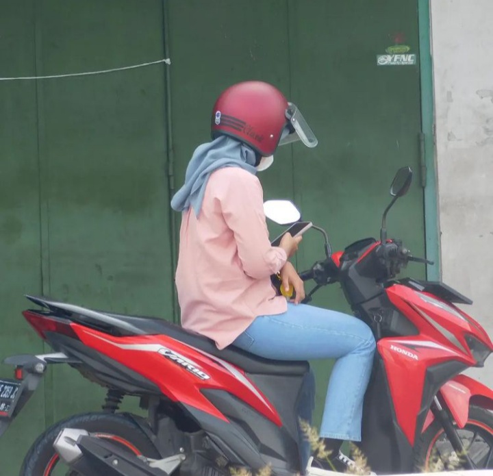 Waktu itu dia mengenakan baju pink, celana levis biru, mengenderai sebuah motor warna merah, kembali mengingatkan memoriku yang mulai memudarkannya.